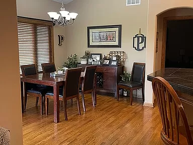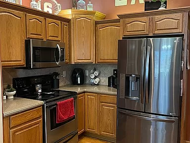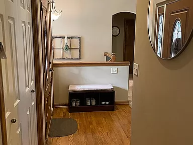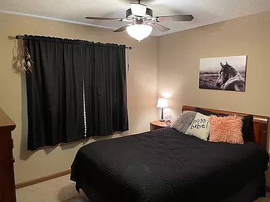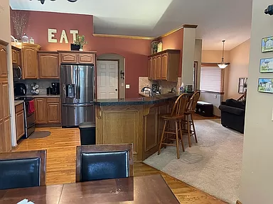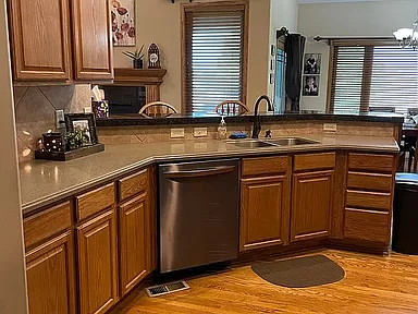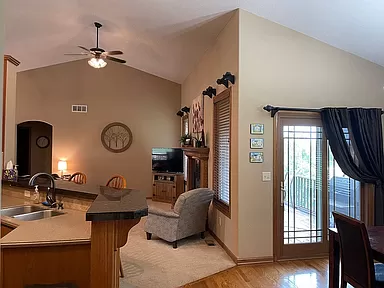 Beautiful home in a quiet one way in and out neighborhood. (Willow Brook Addition) This home has split bedroom plan. 5 bed 3 bath Master offers, large walk in closet with triple hanging for lots of clothes, also hidden laundry room access, separate shower area and garden tub. Kitchen has under cabinet, lighting and over cabinet lighting, granite eating bar, hard surface counters, lots of counter space. kitchen appliances stay with the home. There is a nice eating area with a bay window. Living room has vaulted ceilings and a gas fireplace. Basement is a walkout with two large bedrooms and lots of living room space with potential for a bar area. Two good sized storage rooms downstairs. Sprinkler system and well. Covered back deck and concrete patio below. Garage has heater and custom-made large cabinets!