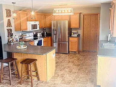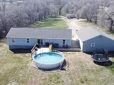 Check out this spacious 4-bed, 2-bath ranch-style home in the city limits with a country feel. The house is located on a serene 4 1/2-acre property, where you can spot wildlife frequently. It’s a beautiful house, with all the bedrooms on the main floor. The master bedroom is on one side of the house, featuring an attached master bathroom with an oversized tub and walk-in closet. The other 3 bedrooms all have spacious closets located on the opposite side of the house, along with the other full bath. The house has a very open concept. The partially finished basement offers endless possibilities for a growing family. It’s currently set up in an open layout, perfect for kids to make their own, but you can also section it off to add one or two more bedrooms. The basement has egress windows already installed. Part of it is unfinished, offering a vast storage area with hookups for a washer and dryer. The main floor mudroom also has hookups for a washer and dryer. A large back deck wraps around one-quarter of the 24-foot above-ground pool, installed in 2020, with a new liner installed in 2023. The 30′ by 40′ two-stall detached garage features a large shop with ample space and insulated walls. The two acres surrounding the house also has an underground dog fence.