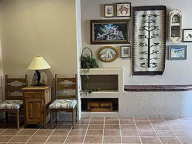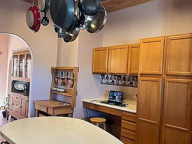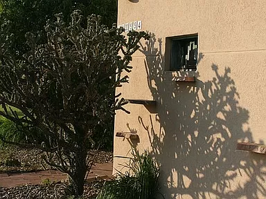 This fantastic adobe style home is on a 2 acre lot 4 miles north of historic Dodge City, Kansas. It boasts a steel frame construction and stucco on the thick exterior walls. There is an enclosed 508 square foot courtyard. Seventy- five per cent of the basement is finished and includes a bonus room. All closets are walk-in closets. There is also a water-softening system and the laundry room is on the ground floor.