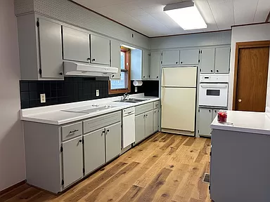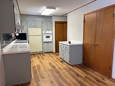 Take a look at this warm and inviting corner lot ranch style home located on a double lot. The total lot size, two lots, is just under 1/2 acre. It is in the 67042 area code and the Circle USD #375 school district. Oil Hill school is approximately 1 block to the north. It has a single attached garage and separate, detached, two car garage/workshop. Plenty of room for storage. Wood burning fireplace, updated kitchen with open floor plan, back patio with spacious backyard and mature trees and landscaping.