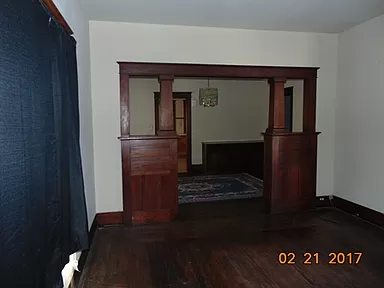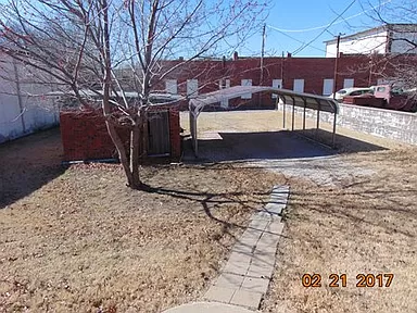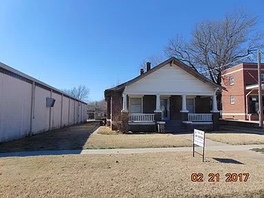 Bungalow Style with lots of natural wood work and natural hardwood floors. Original pocket doors just off the entryway into the front bedroom. All bedrooms line the north side of the home. Each bedroom has a walk-in closet with plenty of storage. Entry hall closet. New ceiling fans located in 2 bedrooms, dining and living room. Some updates as far as paint. Large secluded backyard with a double covered carport. Brick out building for your outdoor equipment. Close to downtown. Sewer access line added 2023.