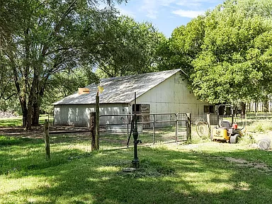 HOBBY FARM / HOMESTEAD Kingman county, Kansas 2 homes on 8.7 acres. Main house 4 bed/2bath custom wood work throughout. Mother in law house 1bed/1 barh 500 sqft 80% done. All fixtures and materials to finish on site. Beautifully maintained 50X30 shop with arched wood trusses. Large animal barn. Property fenced and cross fenced with woven wire. Small stocked fishing pond. Large 50 tree producing peach/nectarine orchard. Apple & pear trees as well as blueberry & blackberry bushes. Beautiful mature trees cover the property for park like setting. Green house and garden area. New septic and laterals. Silo. Beautiful landscaped flower gardens and brick walk ways. Off a paved road 10 minutes from town. Turkey and deer roam the property. $425,000.