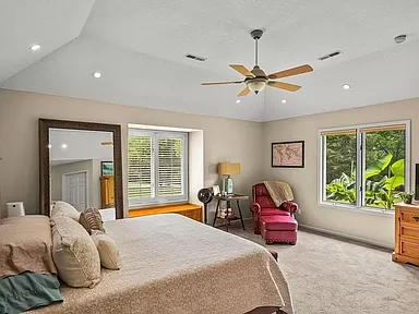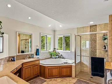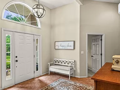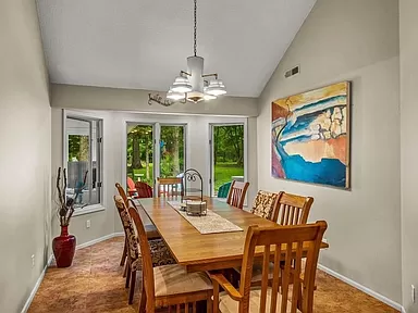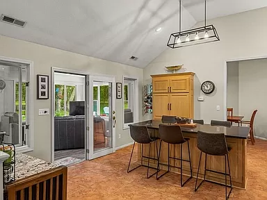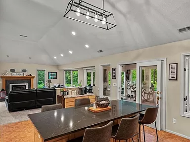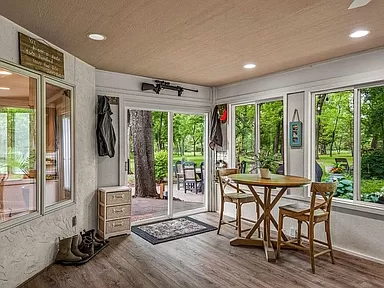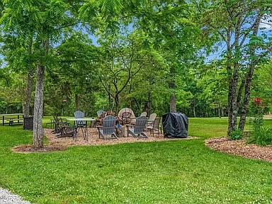 Wooded oasis minutes from town High ceilings, open floor plan Multiple patios and seating areas Fruit orchard, extensive landscaping and abundant wildlife Many updates including quartz countertops, additional cabinetry, flooring, high efficiency HVAC system, new septic tank, etc