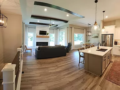 Looking for a new, modern, open floor plan home with TONS of natural light? This home has the space to entertain large groups both inside or out on the large covered porch or patio. Basement is fully finished with LVP flooring throughout. No HOA’s and low specials remaining.