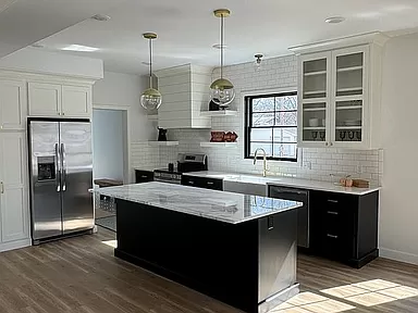 New build modern farmhouse on the most historical and established residential street in Osage City, situated on a double lot only one block from Osage City Schools. Spacious front porch (247 sq ft) with low maintenance Taco Evergrain composite flooring leads to an open plan living/dining/kitchen full of natural light. Living room features a gas fireplace with a shiplap feature wall. Custom Wood Products kitchen boasts a pantry cupboard with pull out shelves, all new appliances including an integrated microwave drawer, a farmhouse sink and both open and closed shelving. Perimeter counters are quartz and the island (which seats four) counter is marble. Down the hall on the main floor is the primary bedroom, with barn doors leading to the en suite bathroom with double sinks in a vanity by Custom Wood Products and a walk in shower. Off of the bathroom is a 12ā x 7ā walk in closet. Also on the main floor, a spacious mudroom with access from the exterior as well as from the garage. A separate hall off of the mudroom leads to a powder room and large laundry closet with an additional sink. Upstairs is a large landing with numerous possibilities – home office, playroom, library, etc. There are two bedrooms with ceiling fans and walk in closets. One room features a fun reading/sleeping nook. A large bathroom between the two bedrooms up has a shower/tub combo, a double sink vanity by Custom Wood Products and a large closet. There is a full, unfinished basement that has been plumbed for a full bathroom and an egress window for a possible fourth bedroom. Other features: an oversize garage, both bat and blown in insulation, double pane insulated low E4 glass Andersen windows, Smart Lap siding with diamond coating and a 30 year warranty and a two zone heating and air conditioning system. LVP flooring, carpet and beautiful tile throughout. This home is solidly built with great attention to detail and was designed with love for the special small town that is Osage City.