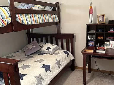 Well maintained one owner 2 story in Blue Valley! 4 BR/2.5 Baths. Cement Tile roof adds great insulation, insurance cost saving of $800/yr., and 50 yr warranty! Nice large yard with mature trees. Many new updates including just remodeled kitchen & family room, complete all new HVAC, beautiful deck, paver patio, 2 new windows, new custom patio door, light fixtures, cabinet knobs, gutters & roof. Nice culdesac lot! Great location close to schools, shopping, restaurants and highway access! Foam insulation & caulking in walls saves in utility costs.