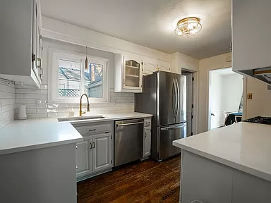 4 bedrooms + an oversized 2 car garage in Roeland Park! This home is on one of Roeland Park’s best streets. Lots to love about this unique home. 2 car garage that opens from both sides. Laundry/mudroom on main level off kitchen. Hardwood floors. Fairy-tale like backyard with composite deck, patio, and cute garden shed or playhouse. Updated bathrooms and kitchen. Finished basement with a half bath. Covered breezeway and a screened in porch. Large double lot. Minutes from downtown and plaza. Walkable to many shops, restaurants and coffee shops + across the street from Cooper Creek Park & a mere 5 minute walk to the brand new R park. Welcome home!