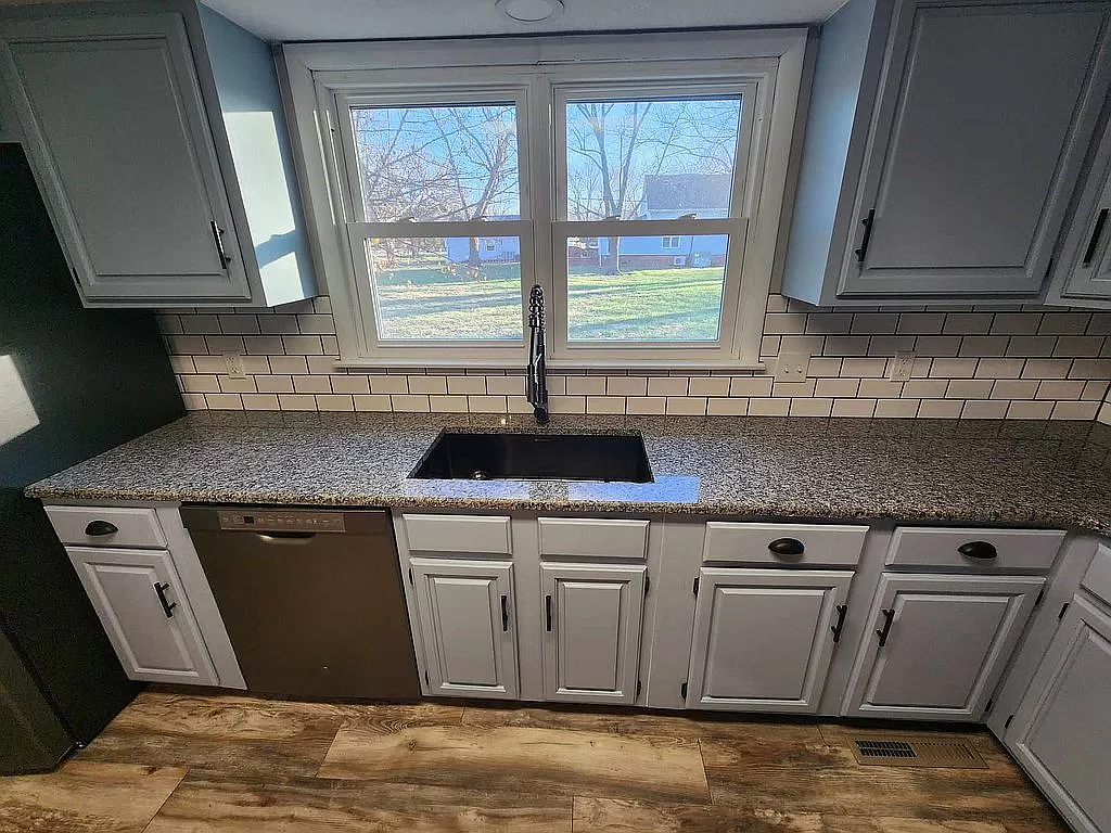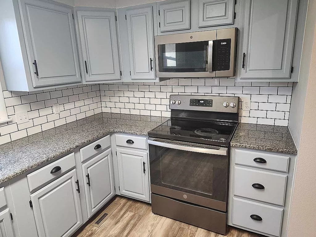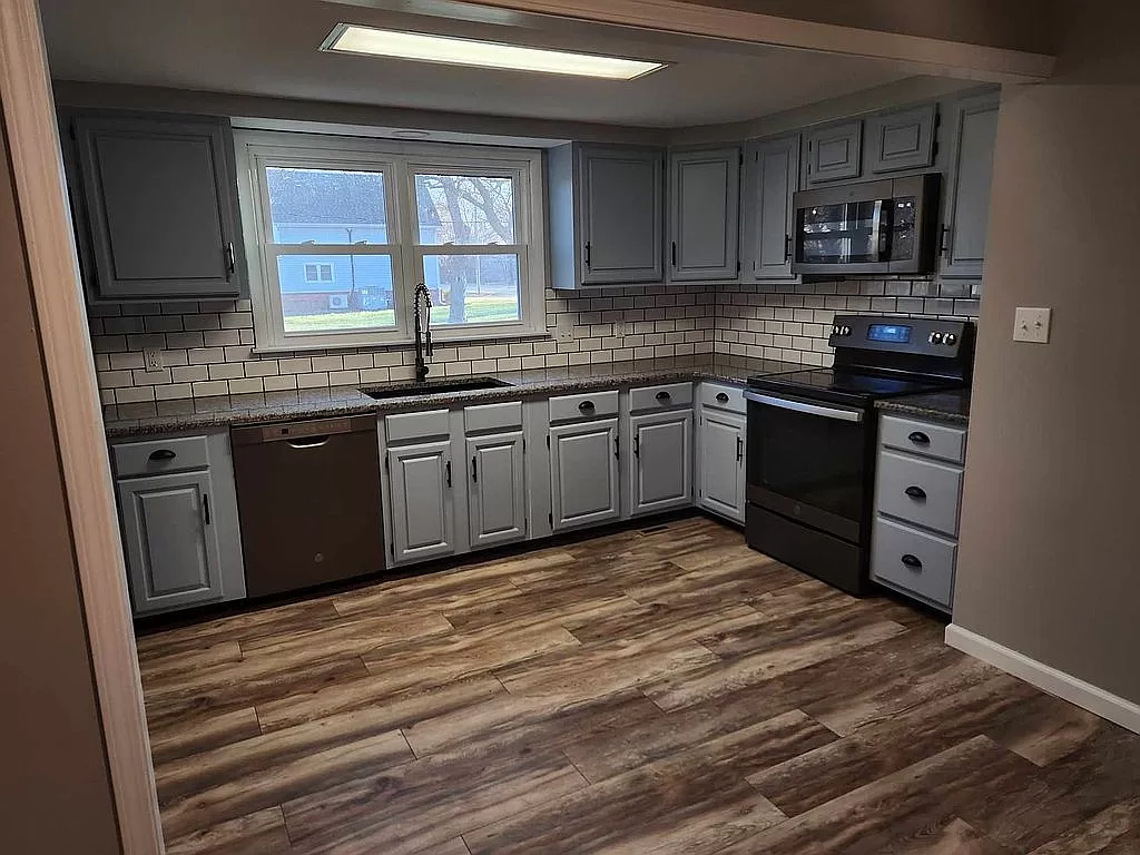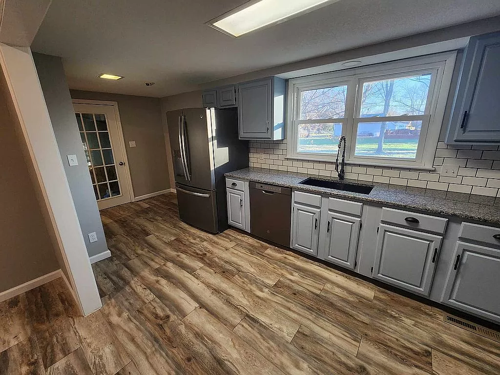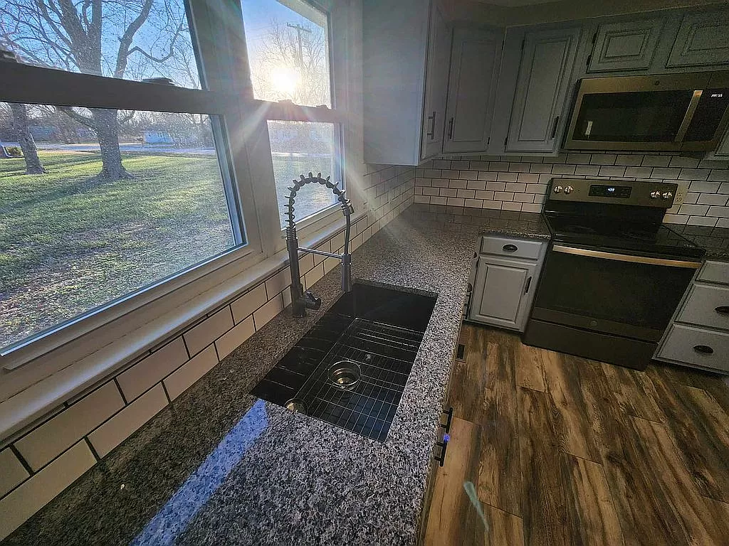 Granite countertops in kitchen, tiled backslash, undermount sink. Outside painted, all walls textured and fresh paint, new flooring, baseboard, doors everywhere. Nice oversized corner lot. 3 bedrooms plus a bonus room that attaches the kitchen and garage that is currently used as a 4th bedroom. Spacious attached one car garage. The side yard has raised garden beds which seller will remove if not wanted. Many updates within the last couple years including new windows, water heater, bathroom redone, laundry room redone, new concrete driveway and sidewalk, kitchen remodel. Newer matching GE kitchen appliances all stay. **New roof** Would consider renting. Fully moved out and mostly empty now.