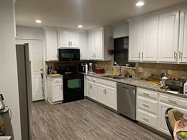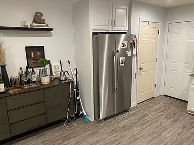 Remodeled Kitchen and Bathroom, vaulted ceilings in Living Room and Master Bedroom. New granite in the kitchen, fresh paint job. Privacy fence added to the back of the property along with an expansion on the back patio for hosting space. Furnace, water heater, AC unit are all 2 years old or newer. Brand new fridge that will stay with property along with washer and dryer staying. Newer triple pane windows in Living Room. No stairs for easy accessibility. Workshop in garage. All vintage bricks from Stilwell/Aubry used to construct wood fireplace in the Living Room. Utility room has plenty of space for washer and dryer. Almost new floors. Amazing nearly 1 Acre treed lot with great shade. Blue Valley School District.