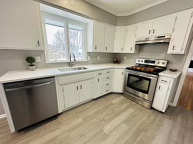 This sharp, newly remodeled ranch home is nestled in the middle of a wonderful and quiet neighborhood and offers 3 nice sized bedrooms, 2 full baths, double car, attached garage and a large living room. Entertain the entire family or hold gatherings in the large family room that features an all white brick fireplace and shelving for display items. There is plenty of room to cook in the large kitchen which features quartz counter tops by Heartland Granite of Topeka. You will find matching quartz vanity tops in the 2 bathrooms as well cut from the same stone. Hardwood floors were refinished along side new waterproof luxury vinyl in the kitchen and bath. Laundry is easily accessible on the first floor or can be moved to the basement with existing waterlines. The basement is clean and has electrical and some dry wall ready to easily add another bedroom and rec room. Enjoy the workshop down there for those handy projects. Outside you will find the exterior has fresh paint along side a huge front and back yard with green, well manicured grass that has been serviced regularly by Topeka Landscape. The irrigation system will continue to keep the grass green and watered with little effort.