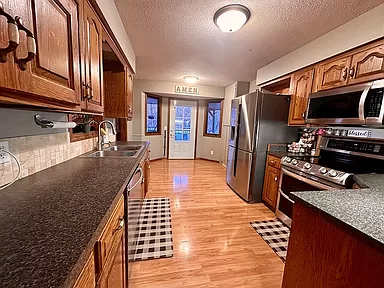 Beautiful ranch style brick home located in Whitewater. The home is located near the city park. Large fenced back yard(5ft chain link) with mature trees. High vaulted ceilings with beams and ceiling fan in living room area as well as a beautiful wood burning brick fireplace. Behind the lot is a wooded area, so no homes directly behind. Master bedroom and dining room both have coffered ceilings. Master bathroom has double sink vanity, and vaulted ceiling with skylight. 3 bedrooms and 2 bathrooms on main level with 1 bathroom and bedroom in spacious finished basement. All bedrooms have ceiling fans. Wet bar in basement. Over-sized 2 car garage. Excellent school district- Remington.
