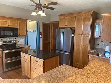 Well built 2 story farm house. Updated plumbing, wiring, and drywall. Kitchen remodel. Master suite addition on main floor. Central heat and air. Full basement under original 28×28′. Sits on 6 acres of mixed brome and native grass. 48×100′ pole shed.