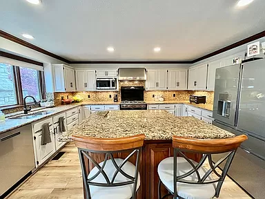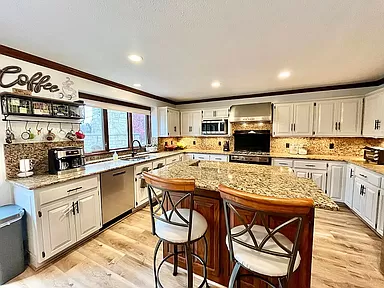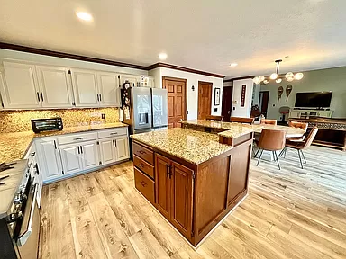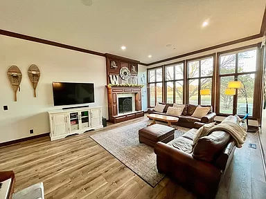 Fulfill everything on your wish list with this executive home in the Tallgrass golf community. It’s a hidden gem in one of the most desirable locations in town! As you enter you will be awed by windows that span the great room, a large gas fireplace and open concept. Motorized blinds open and close to control your scenic lake views at the touch of a button. To take in more of the view, head through the large glass sliding doors off the kitchen and onto the custom east-facing stone patio with gas outdoor fireplace for year-round outdoor dining and entertaining. You can grill with worry-free natural gas connection while you watch ducks swim on the lake, or golfers tee off on Tallgrass Country Club’s Signature Hole 3. If weather is less than ideal, the eat-in kitchen has a large island, granite countertops, gas stove, and a high-end fridge and matching dishwasher. Let the new flooring that spans the main floor draw you into the primary suite, nestled on the north side of the home. With vaulted ceiling, plantation blinds and spacious renovated bath, it’s the perfect owner’s retreat. There is flex space that links the main entryway to the kitchen. Natural uses for this space include a home office, or formal sitting or dining area. Upstairs boasts three additional bedrooms and a full bath with double sinks and extra cabinetry. In the 925 square feet finished basement is a large flex space to use as you dream, be it a gym, children’s play area, man cave or movie room. On the north side you’ll also find a windowless (5th) bedroom, third full bathroom, and spacious laundry room with floor to ceiling cabinetry and laundry shoot from the primary bath. As if there weren’t already enough storage throughout the house, the west side of the basement has a large unfinished utility room with expansive wooden shelves, perfect for keeping all those seasonal decorations organized and neatly tucked away. Practical yet priceless custom amenities include automatic motion-sensor lighting in the primary closet, laundry room, main staircase, and storage room. Gorgeous landscaping and well-maintained yard surround the house, with sprinkler system. To cap it all off (literally) there was a brand-new Class 4 impact resistant roof installed in 2023! This is priced to sell fast! Don’t wait to make this dream home your reality.