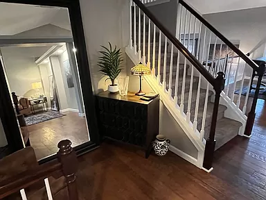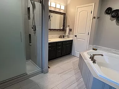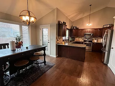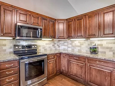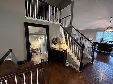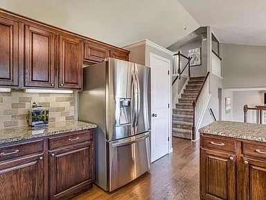 This spectacular home with captivating style and inviting open living areas located in the Bay Country subdivision and Goddard School District and walking distance to St. Elizabeth Ann Seton. The front entry is inviting and spacious with an exceptional front entry door, sidelights with iron accents, and a large, tiled entry area. This gorgeous home has been beautifully updated with the perfect blend of stunning wood floors, white trim accents, striking granite and quartz countertops, stylish lighting fixtures, and features vaulted ceilings and great windows providing wonderful natural sunlight throughout the home. The main floor has awesome living space with both a gorgeous living room and expansive family room. The living room is spacious and includes a large, triple window with box seat, hand-scraped wood floors and great accent lighting. The kitchen is exceptional with awesome cabinet and counter space, granite countertops, tile backsplash, large eating bar, stainless steel appliances (range/oven, built-in microwave, dishwasher), under-cabinet lighting, pantry, wood floors and huge double window over the sink with a great view of the covered deck and back yard. The kitchen is open to the large dining area which also has a large triple window and exterior door to the covered deck. The main floor family room is an awesome space for family time and media viewing and features a beautiful wood and tile-accented gas fireplace, and a walkout (at grade) sliding door to the patio and backyard. Just off the family room is a full bathroom with a walk-in shower, and the laundry room. The upper level features a gorgeous ensuite, including a spacious primary bedroom, walk-in closet, and a beautifully remodeled and updated spa-like bathroom with exquisite tile floor, a large quartz-topped vanity with two undermount sinks, large soaker tub, separate walk-in tile shower with floor-to-ceiling tile, dual shower head, and barn-door style glass shower door, and a large window with obscure glass window providing brilliant natural light throughout the entire bathroom. The upper level also includes two additional bedrooms and another full bathroom with a tub/shower. The finished basement area can be used as a bedroom and includes a large double daylight window, or this room could be used as an office (or double office), media room, playroom or flex space. The adjacent unfinished room would make a fantastic walk-in closet, or another office space, study or playroom. There is more storage available in the mechanical room and in the oversized garage. The exterior features a beautiful lawn, fully-fenced yard, sprinkler system, patio area and an enjoyable covered deck just off the dining room/kitchen ā perfect for grilling! This fantastic home is in a great area with easy access to highways, schools, shopping, and dining! This one is move-in ready and feels like new! Enjoy the beautiful indoor and outdoor living with your family and friends – including walks around the neighborhood lakes and fantastic summer sunrises and sunsets!